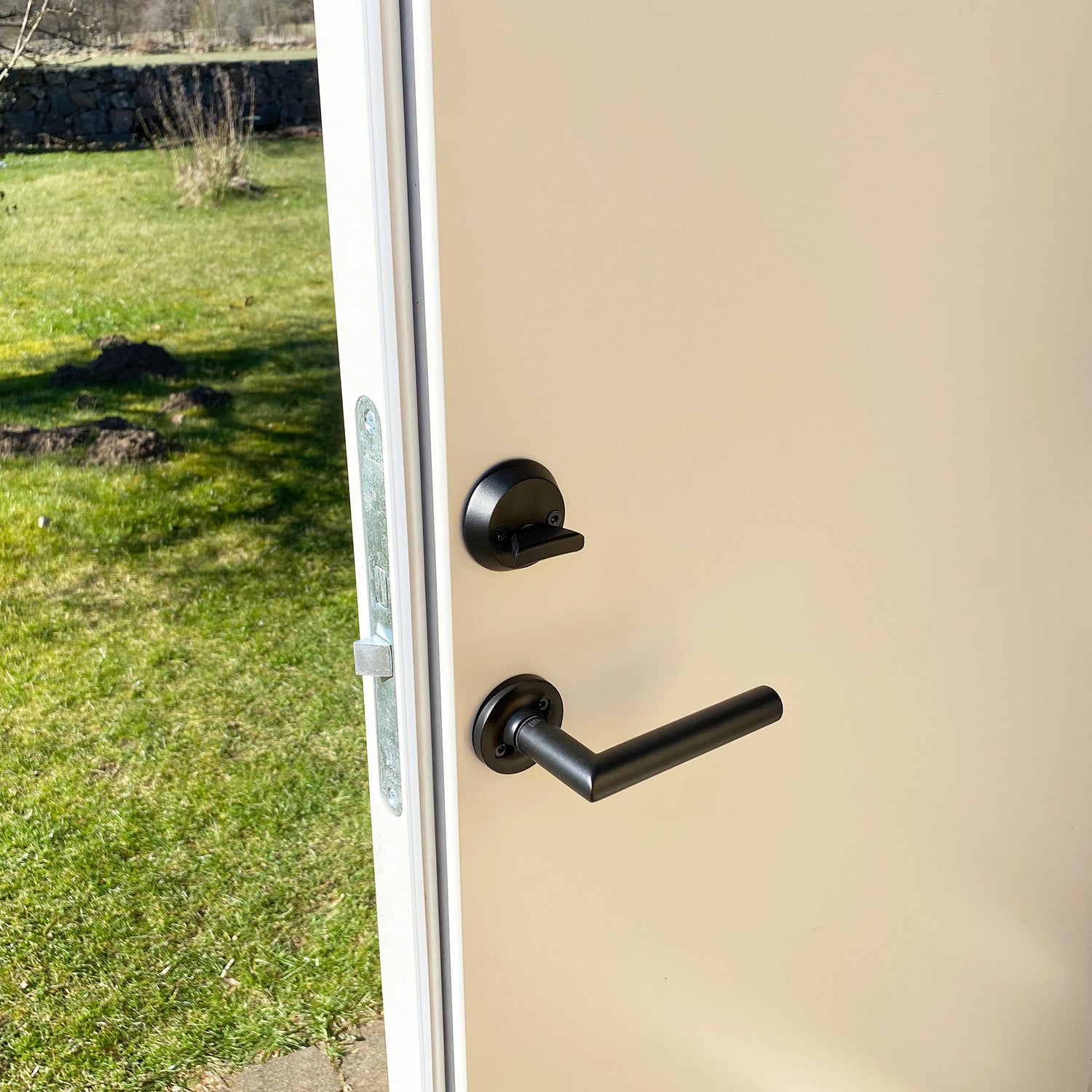 Designet til at passe nutidens standard af låsekasser. Dørgrebet passer til alle udendørs døre med en dybde på 40-80 mm, og alt hvad du behøver for montering medfølger. Dørgreb til udendørs dør