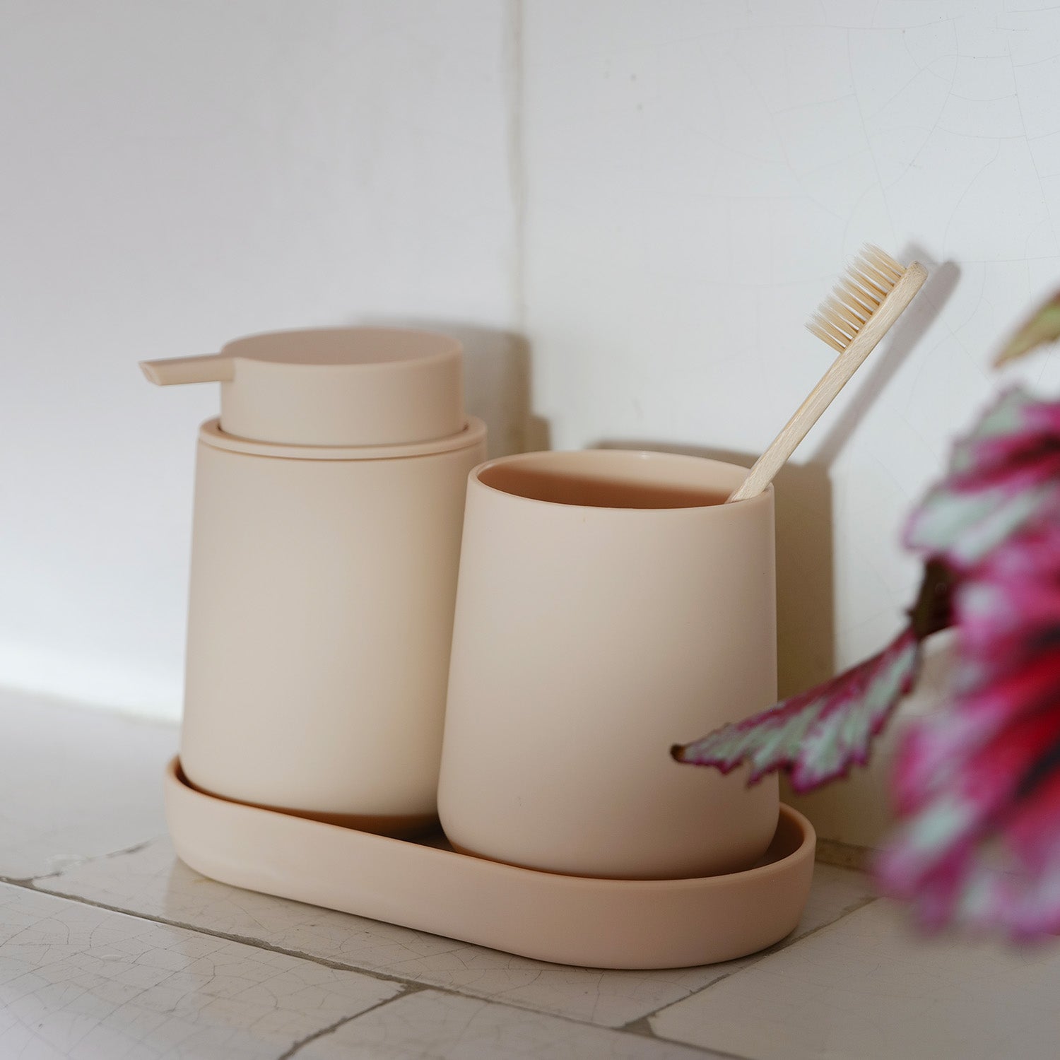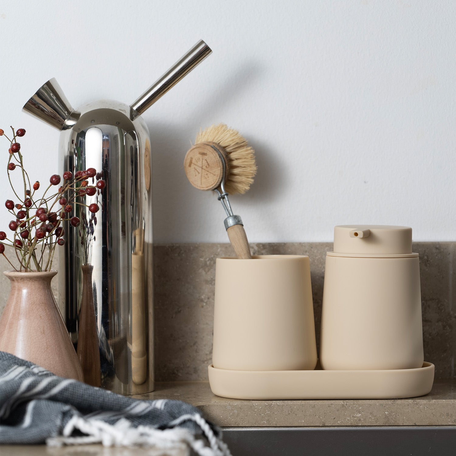 Freistehender Seifenspender mit langer Haltbarkeit und einfacher Bedienung. Hergestellt aus robustem und strapazierfähigem Kunststoff, ist dieser Spender so konzipiert, dass er den täglichen Gebrauch aushält und seine Farbe Jahr für Jahr beibehält. Das Produkt sollte nicht in der Spülmaschine gereinigt werden.