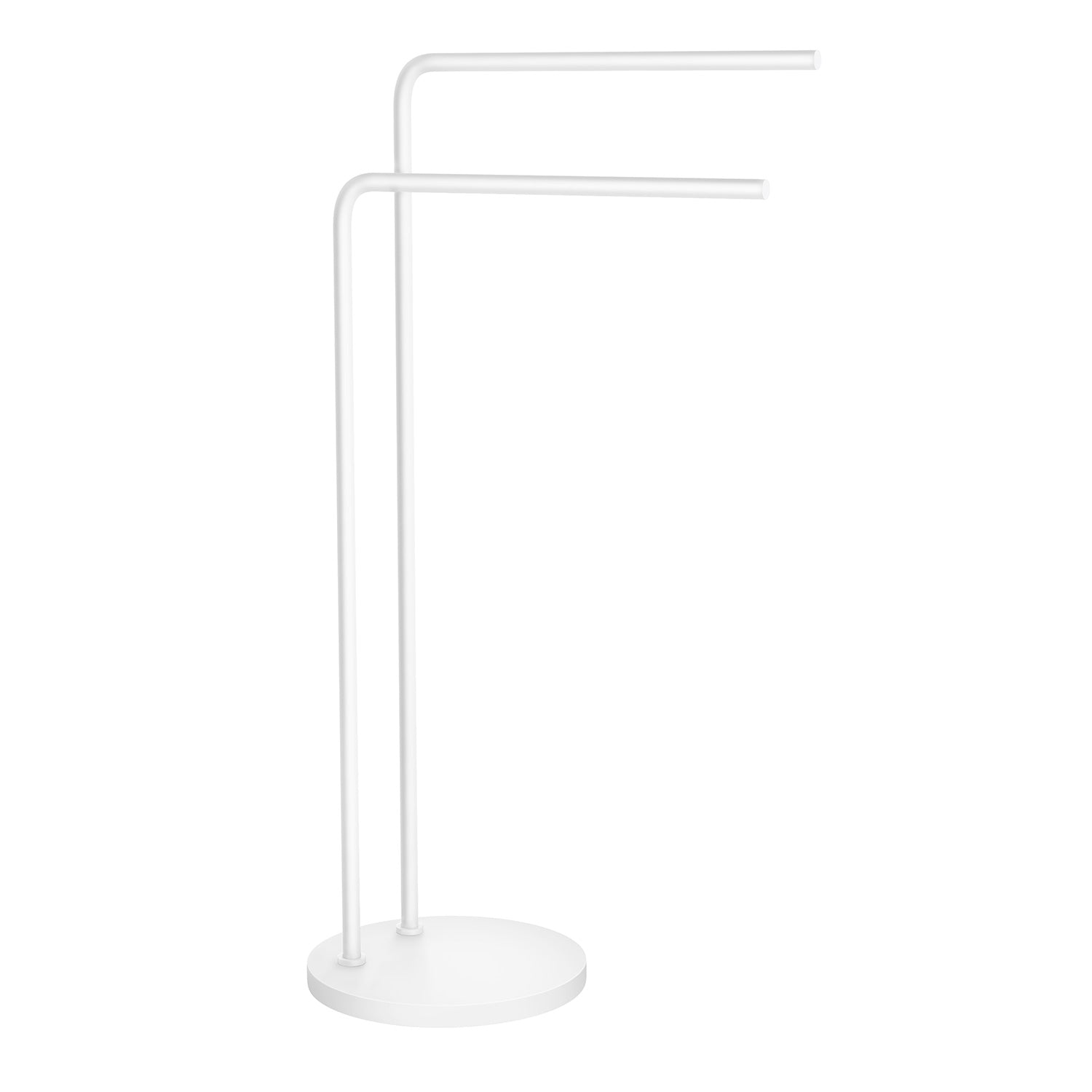 BESLAGSBODEN Double Towel Rail. Free Standing. White Steel. Height 800 mm. Base Plate diameter 250 mm. Rail length 400 mm.