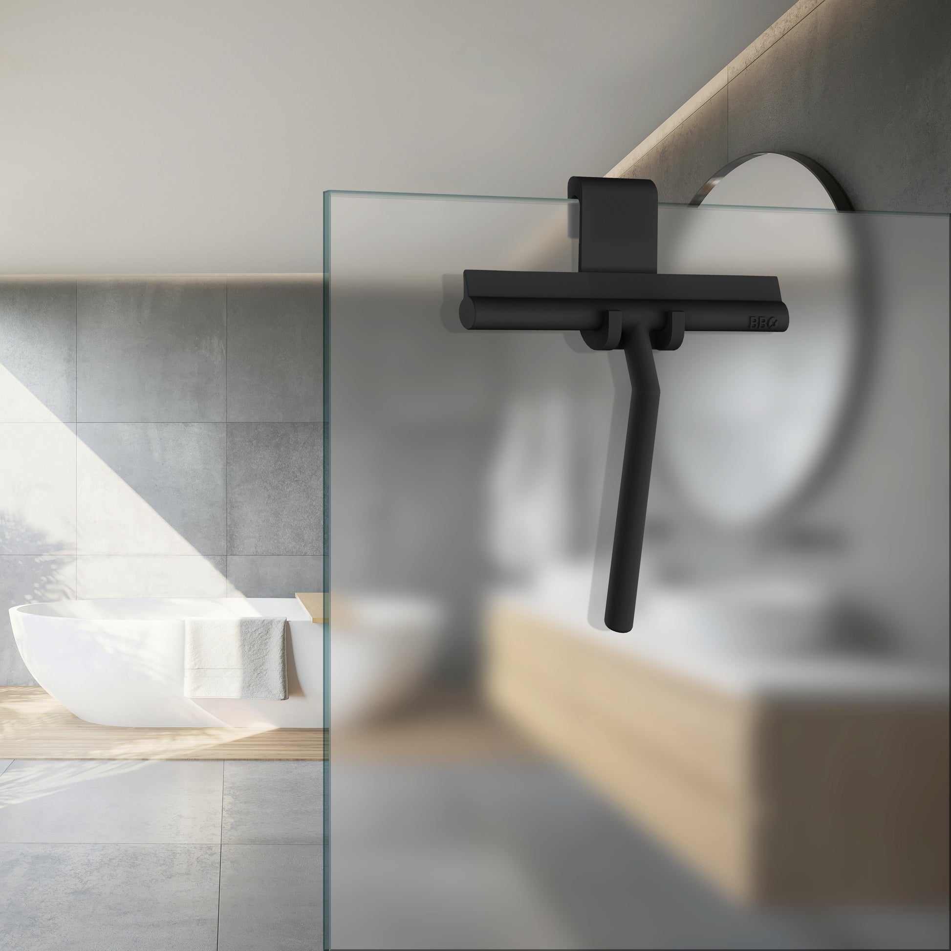 BESLAGSBODEN Shower Squeegee with Holder. Black Silicone. 210 x 188 mm. Total Height with Holder 250 mm.