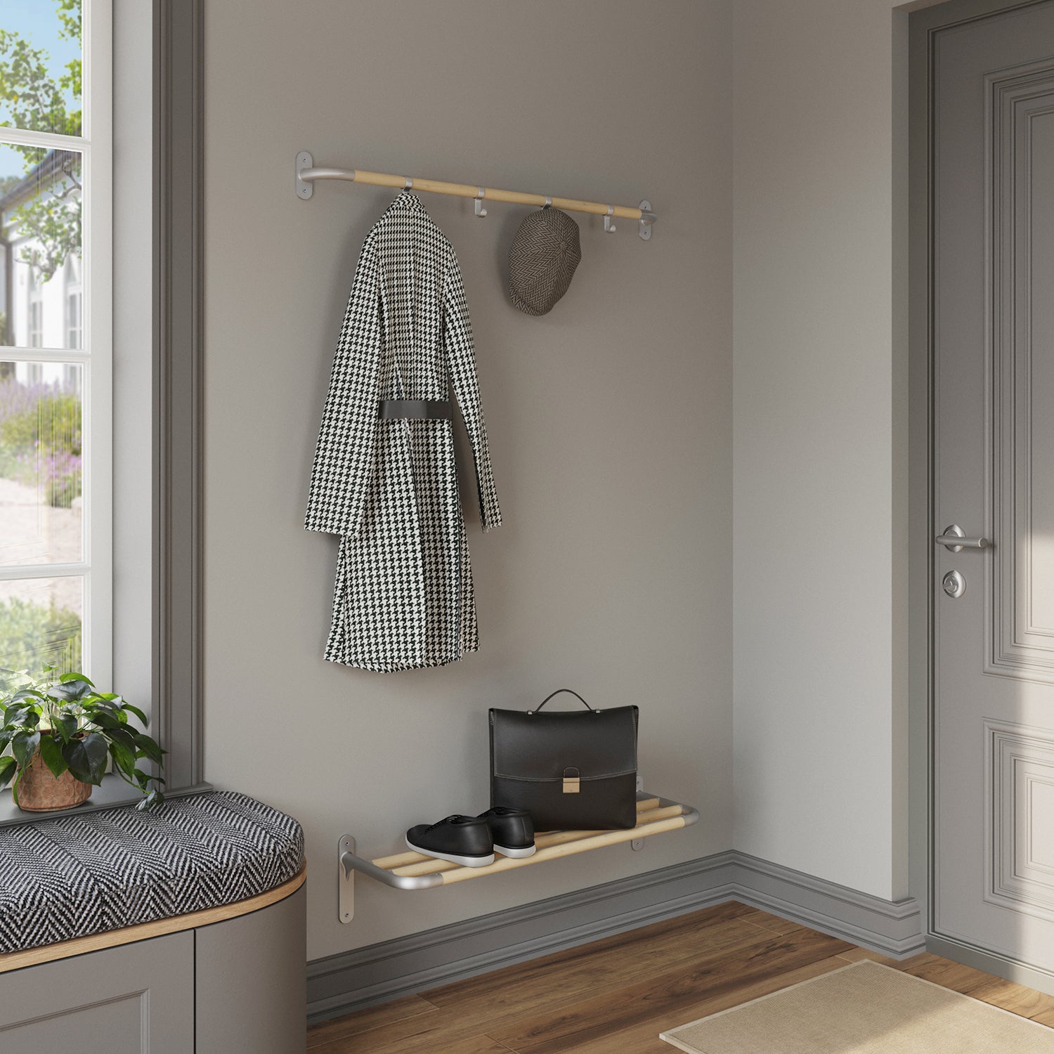 Combine functionality with Scandinavian design with this hook rack in untreated beechwood and cast aluminum. The product draws inspiration from Scandinavian nature and is designed with soft details where the round rod meets the aluminum bracket seamlessly. Create a harmonious look in the hallway with our Fjord hall collection.