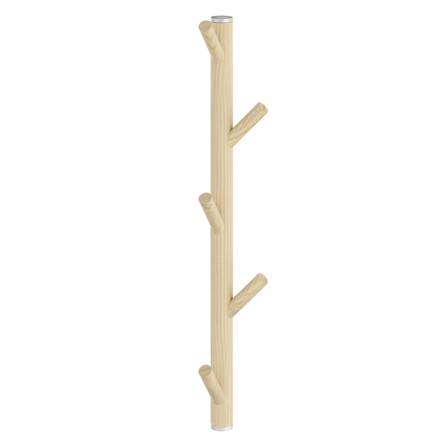 Vertical coat rack designed with a dowel of untreated beech and gray aluminum details. Maximize storage and create a harmonious expression in the hallway inspired by Scandinavian nature. The coat rack is equipped with 5 hooks.