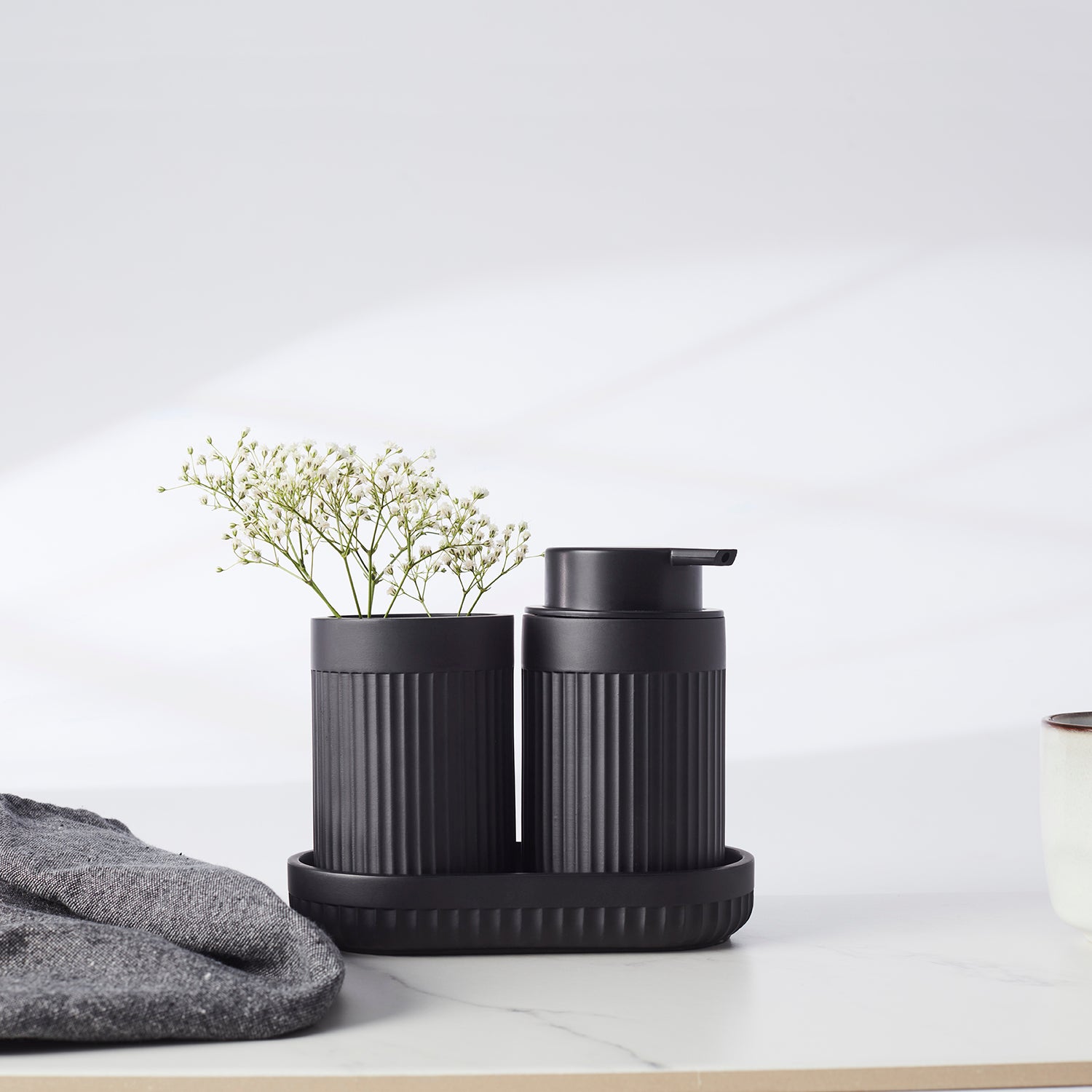 BB TVÅLKOPP/FAT RÄFFLAD SVART
