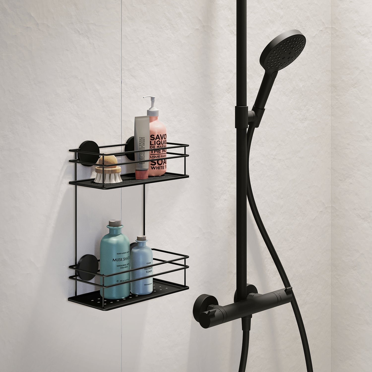 BESLAGSBODEN Double Shower Basket. Black. Self-adhesive.