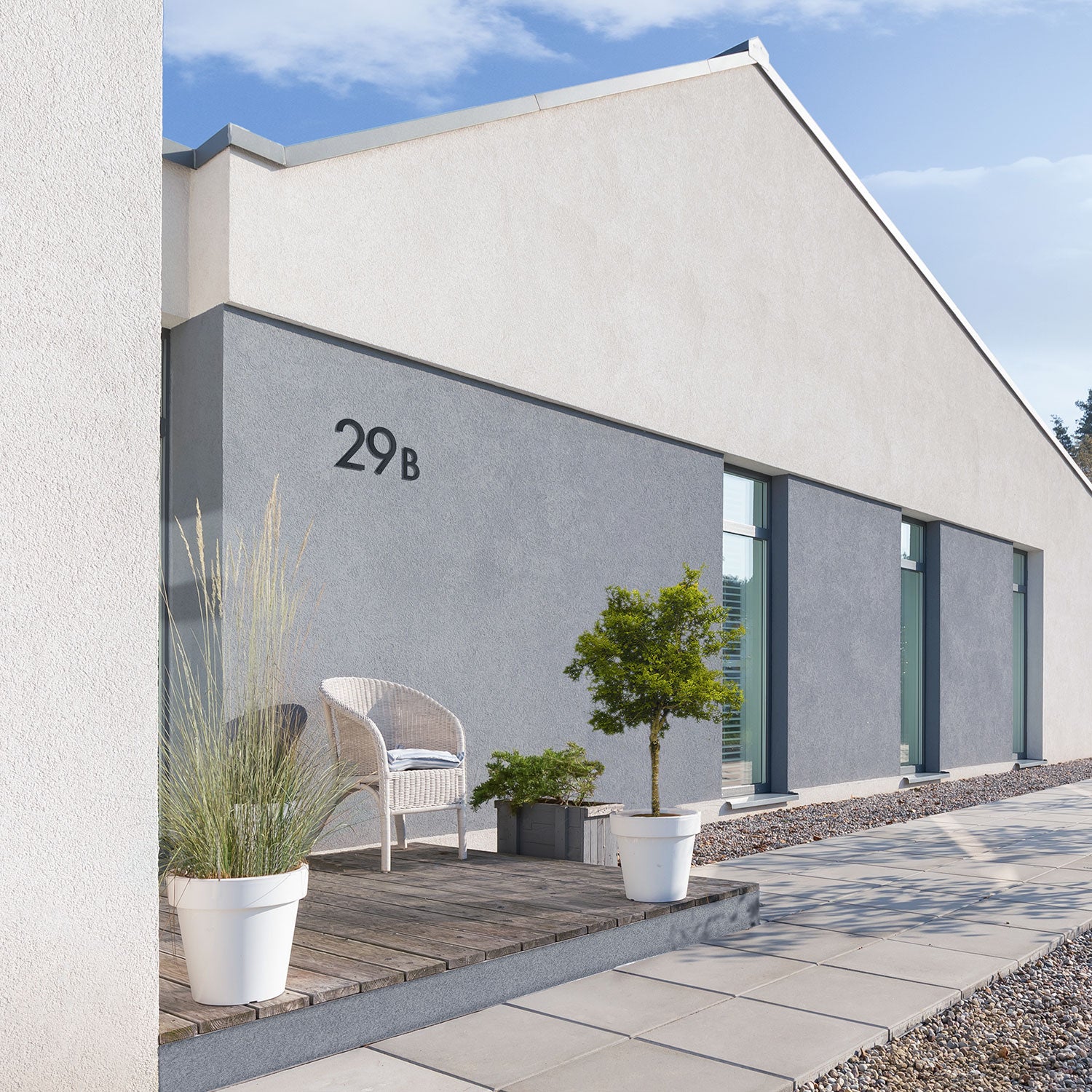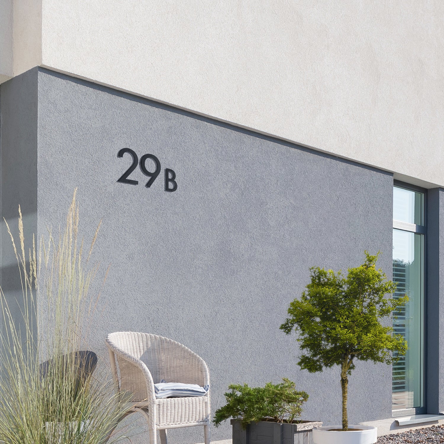 House letter B belonging to our NORDIC series. Matte black letter in a sleek design that becomes a stylish detail on your facade. The facade letters are rust-free and withstand weather conditions. Everything you need for installation is included: screws, spacers, and plugs.