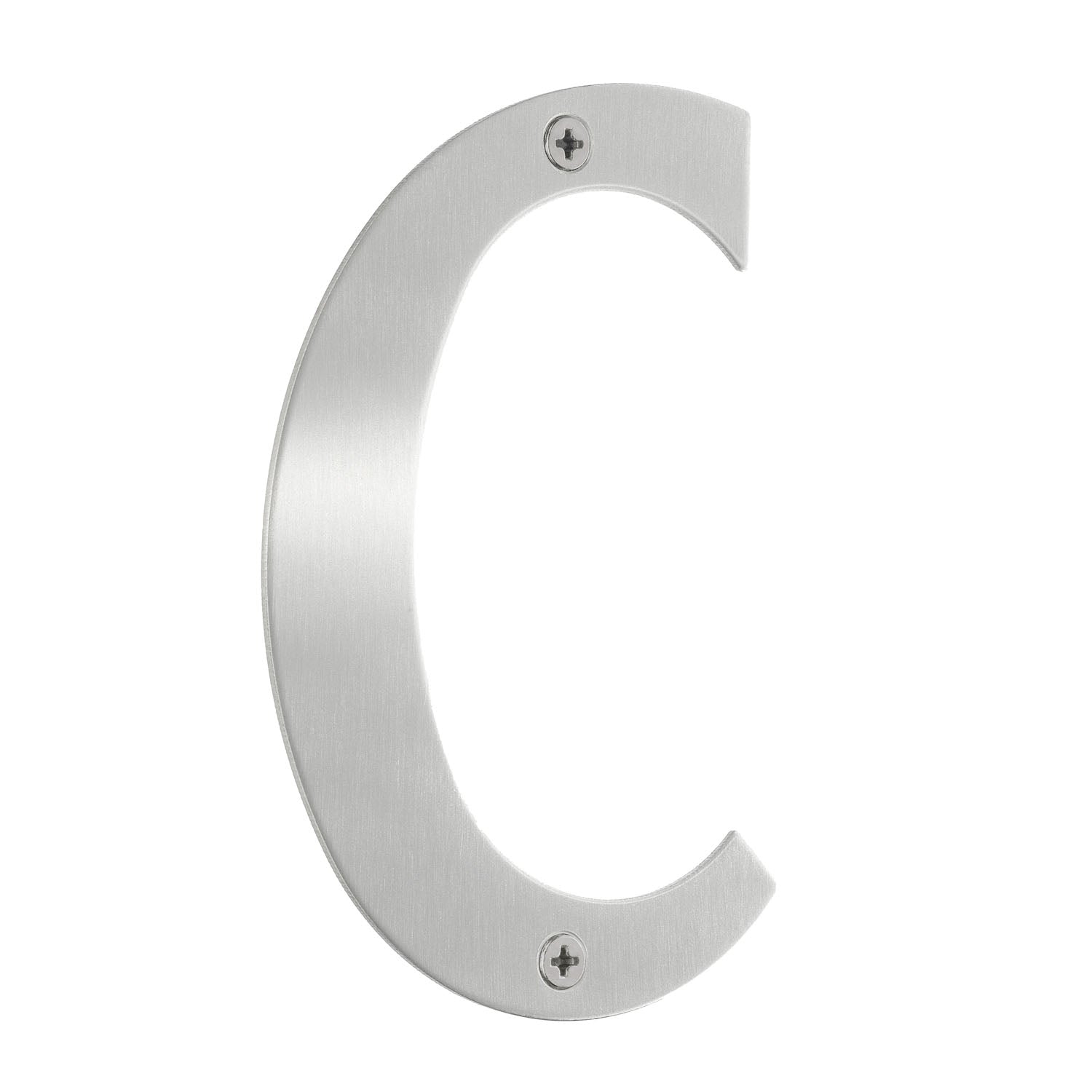 BESLAGSBODEN House Letter C. Brushed Stainless Steel. Height 120 mm. Complete with screws, spacers and plugs.