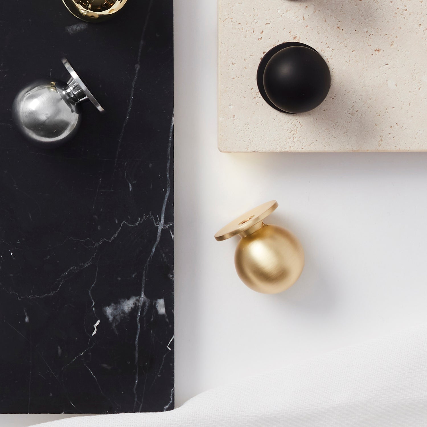 A sophisticated knob in brushed brass with a diameter of 24 mm. The warm tone and brushed finish make it suitable for many different settings - from kitchens and hallway storage to a classic chest of drawers. A small detail that enhances the whole.