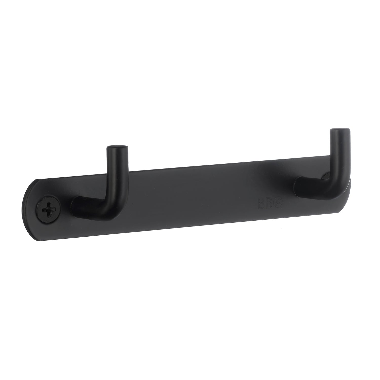 A compact black hook rail with two hooks - perfect for smaller spaces where style still matters. The matte finish and clean lines create a modern look that feels both subtle and sophisticated.