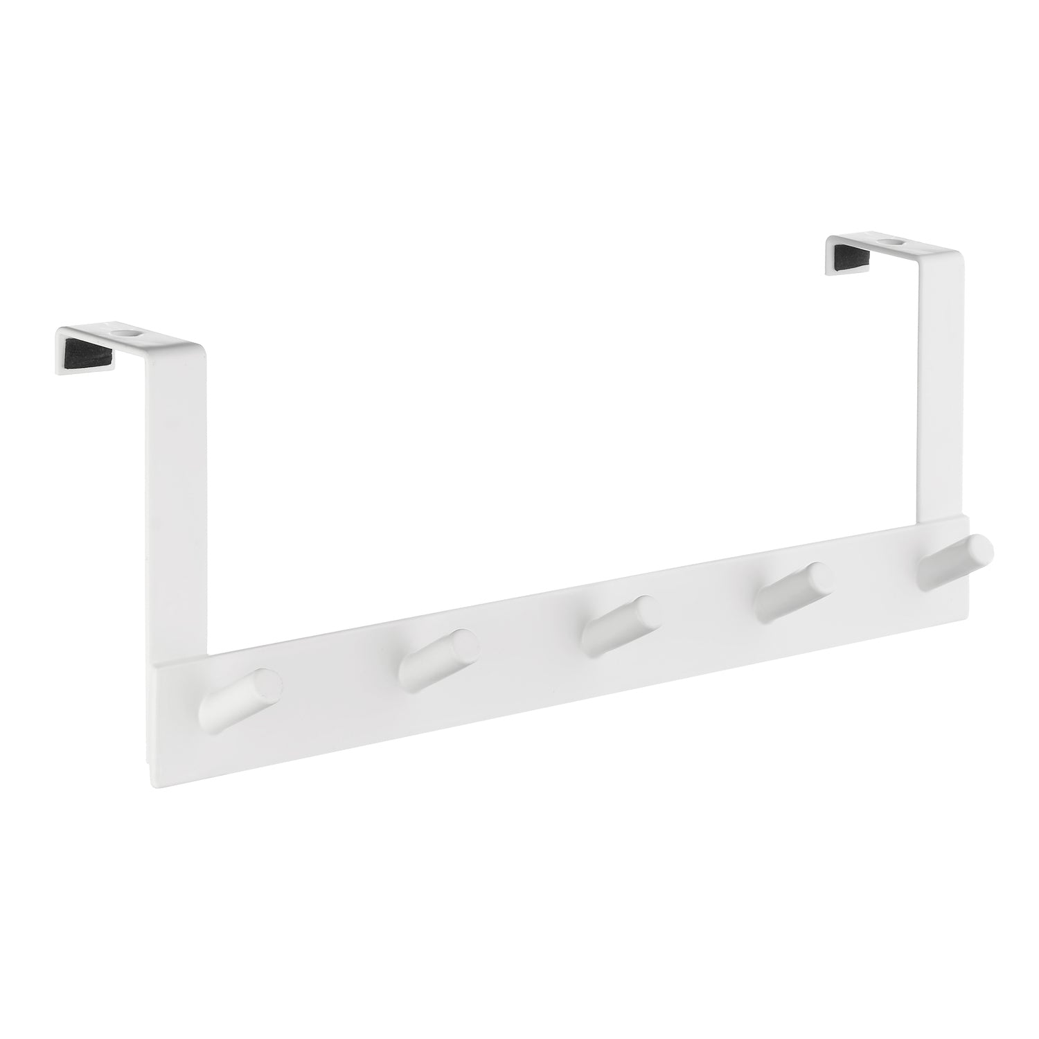 This white over-door hook rail features five brushed-steel hooks. The bright design blends seamlessly into the surroundings, creating organisation without clutter.
