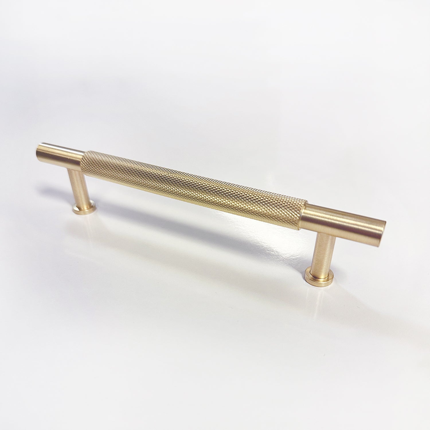 An exclusive handle in brushed brass with a knurled texture that adds depth and personality. The elegant finish makes it suitable for both classic settings and modern interiors. A detail that truly elevates the overall impression.