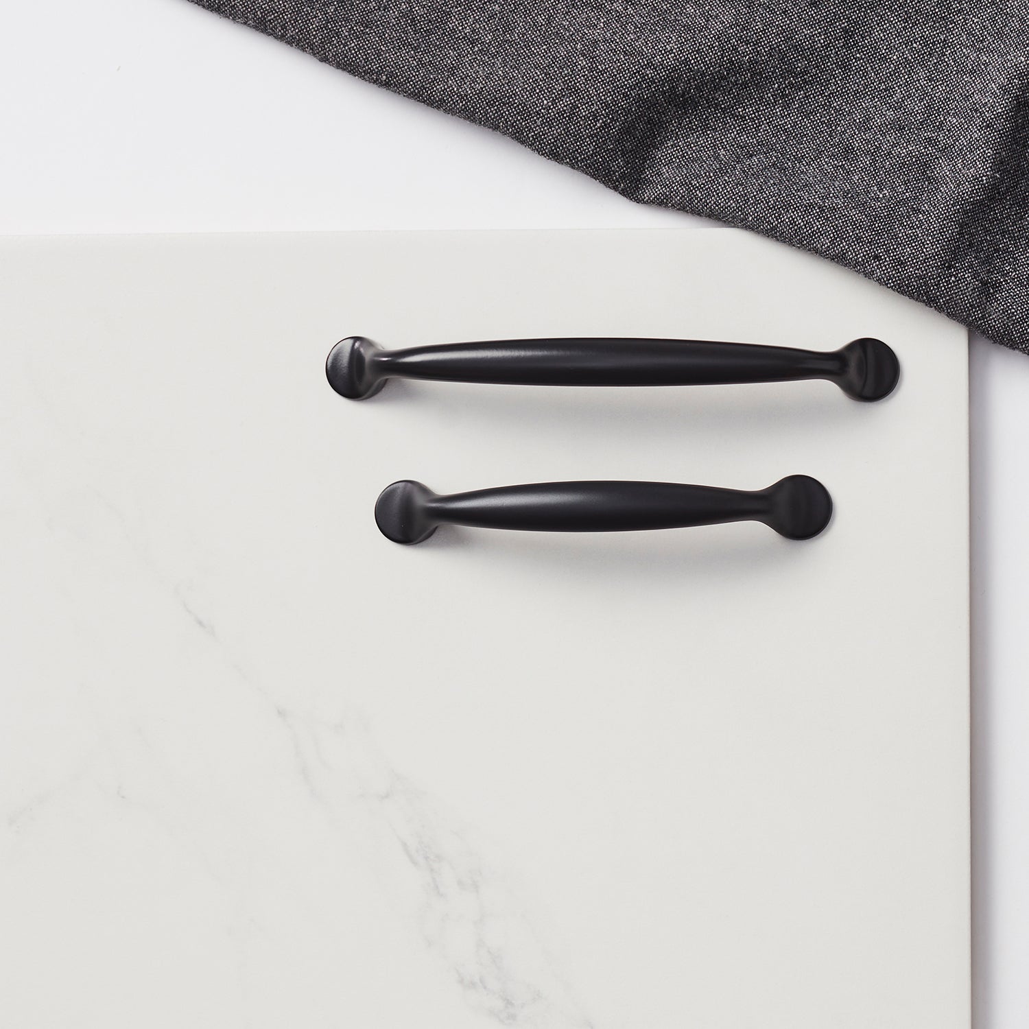 A handle in black that conveys modern sophistication. The matte finish makes it easy to combine with various colors and materials, while the design remains discreet and stylish. A simple way to elevate the overall impression.