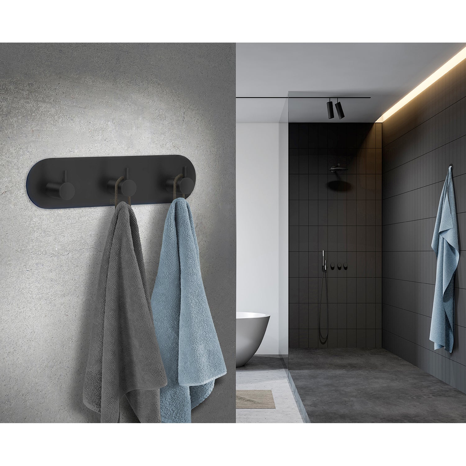 BESLAGSBODEN Design Triple Hook. Black Stainless Steel. Self-adhesive. Length 190 mm.