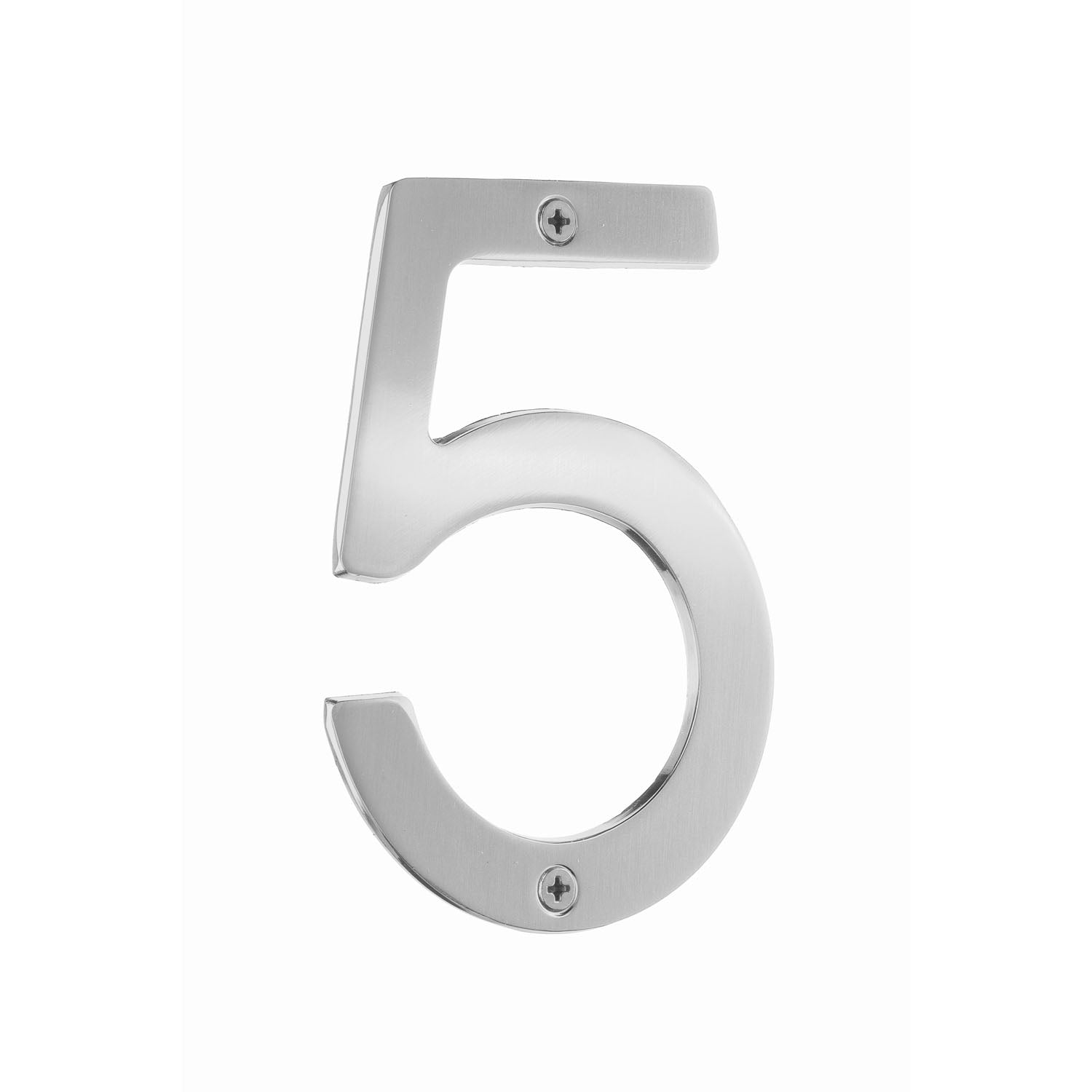 VILLA House Number 5. Brushed Chrome. Height 120 mm. Complete with screws, spacers and plugs.