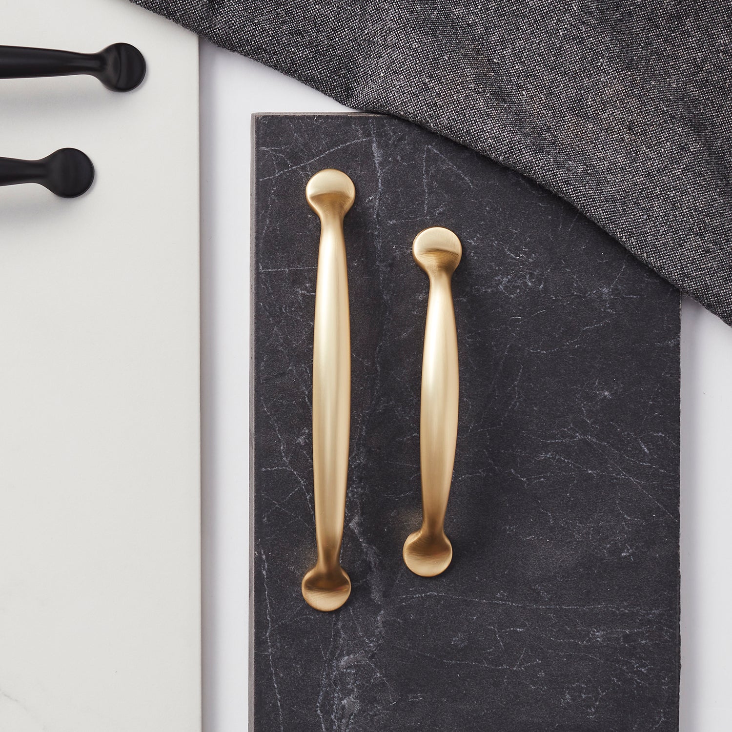 Ett handtag i borstad mässing med en mjuk glans och ett tidlöst formspråk. Den varma tonen gör att det smälter in i många olika miljöer och skapar en elegant helhet. En perfekt detalj för dig som uppskattar genuina material och klassisk design.