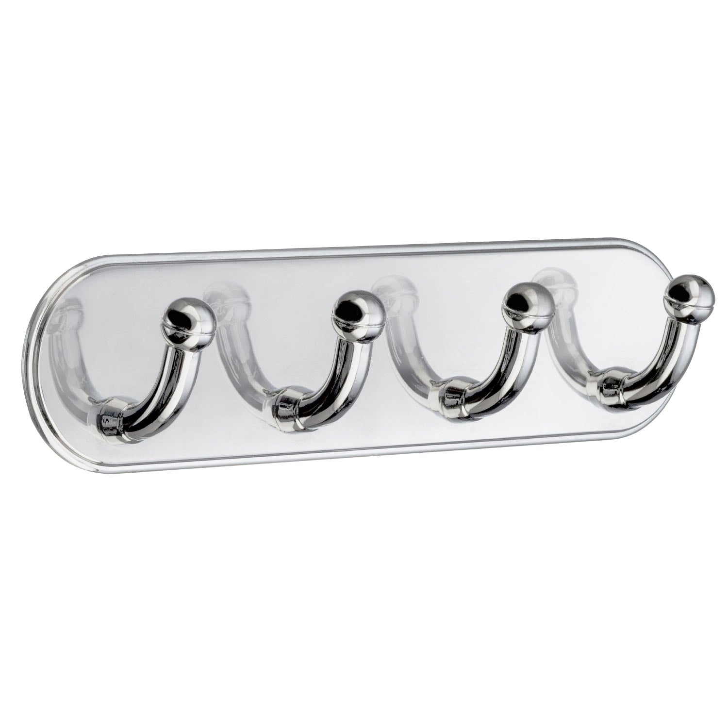 Självhäftande kromad handdukskrok med runda mjuka former och detaljer. En självhäftande fyrkrok är ett perfekt val för dig som inte vill borra i det känsliga våtutrymmet utan istället får du kroken på plats med 3M kvalitetstejp som du fäster snabbt och enkelt i badrummet. Fyrkrok